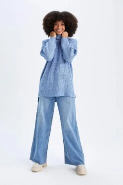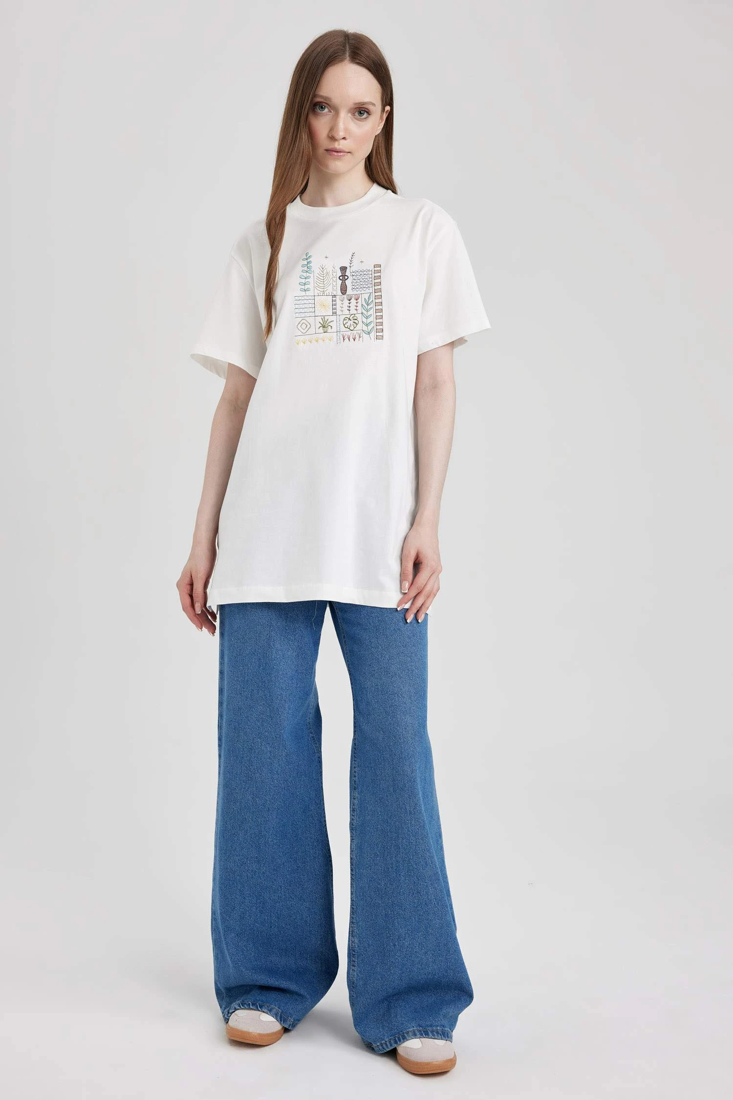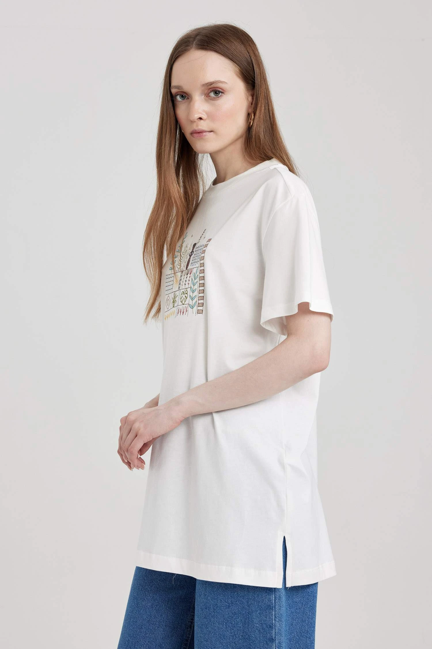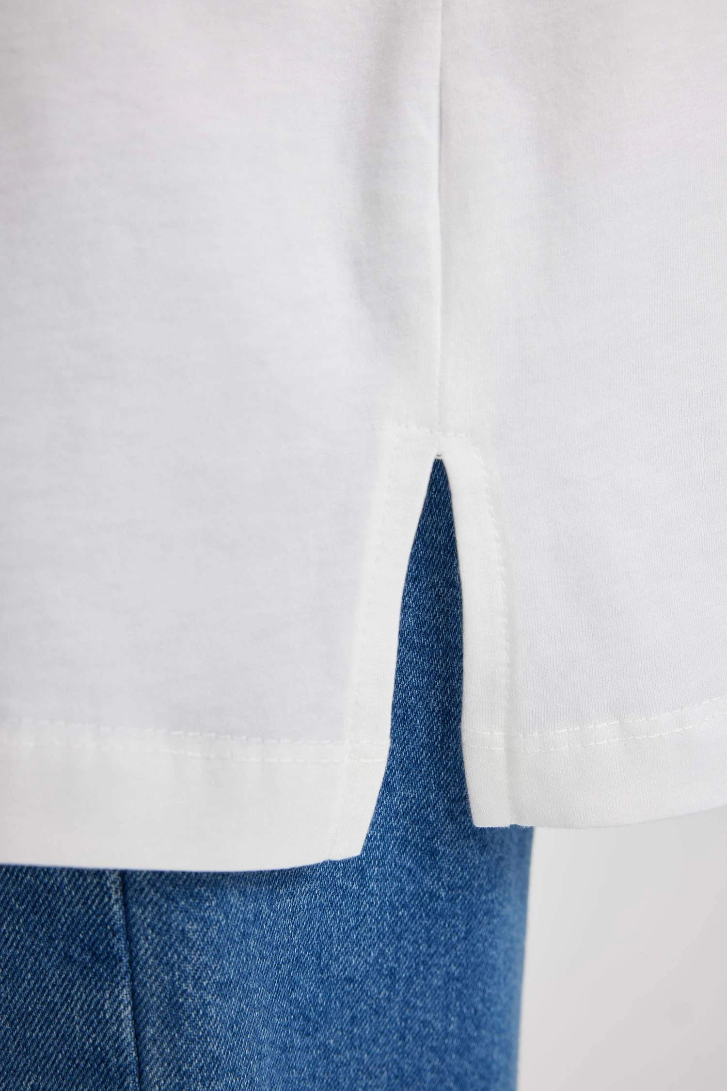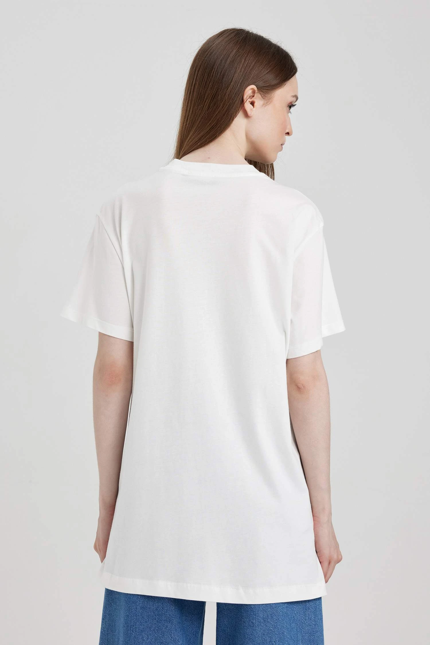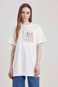 DeFacto Bisiklet Yaka Nakışlı Kısa Kollu %100 Pamuk Tişört Tunik